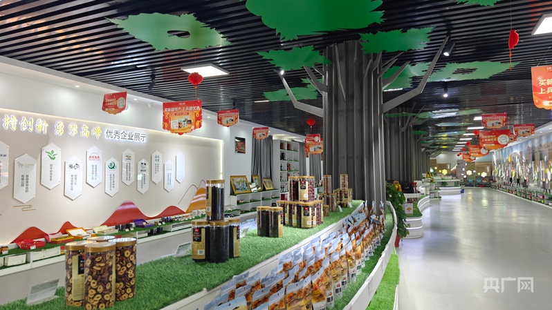 电商产业园内陈列着琳琅满目的新疆特产